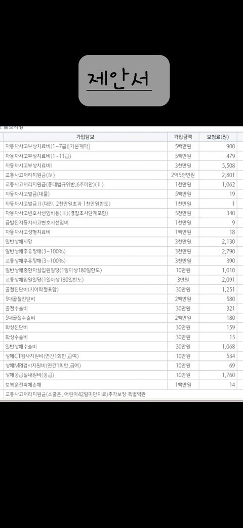 많이 타는 보장 항목들 넣어주신거라는데.