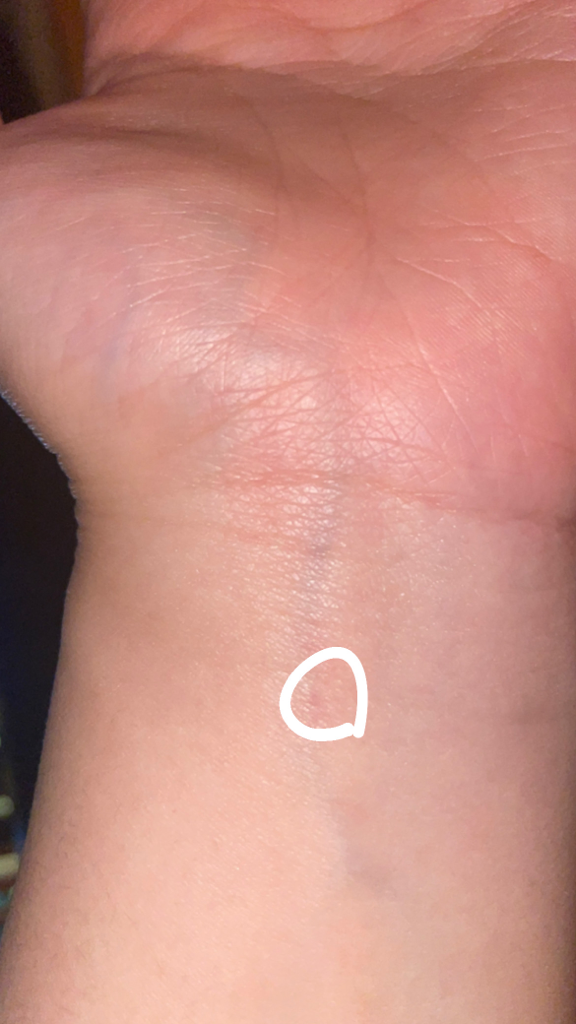 손목이 가만히 있을땐 괜찮고 누르면 특정부위가 따가운데 왜 그럴까요?? 상처는 안났고 어디에 부딪힌적도 없어요 근데 빨간점 하나(쪼끔한거) 났어요