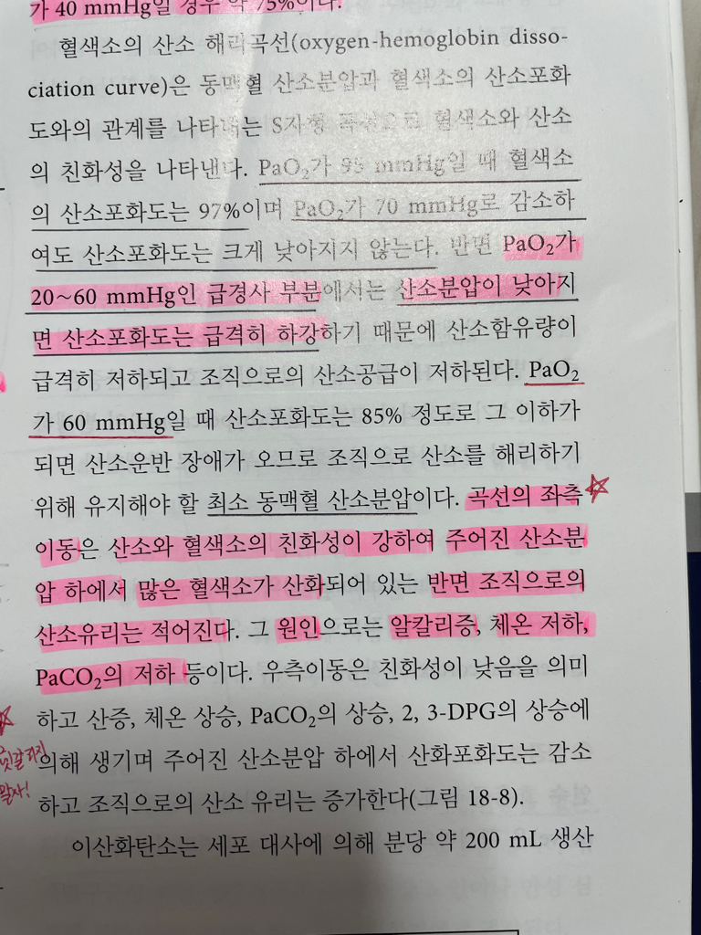 체온이 낮아지면 낮은 산소분압으로도 같은 산소포화도의 양을 유지할 수 있다는 말 같아요