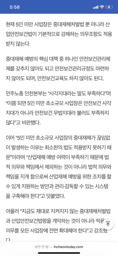 산재로 인한 법 처벌 받을 때 5인 미만은 예외라고 기사에서는 여러개 그러는데 노무사들은 또 5인 미만도 처벌 받는다 하거든요