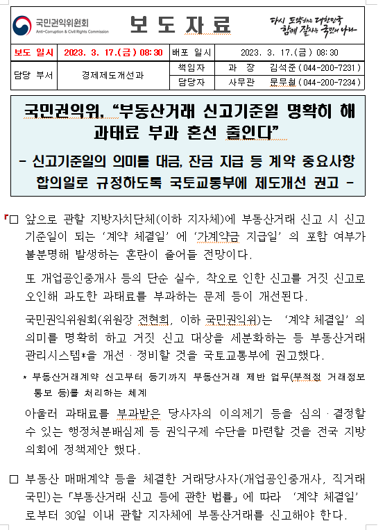 부동산 실거래 신고 방법은 부동산 거래가 완료된 후 , 거래 당사자는 계약 체결일로 부터 30일 이내 신고를 해야 합니다.