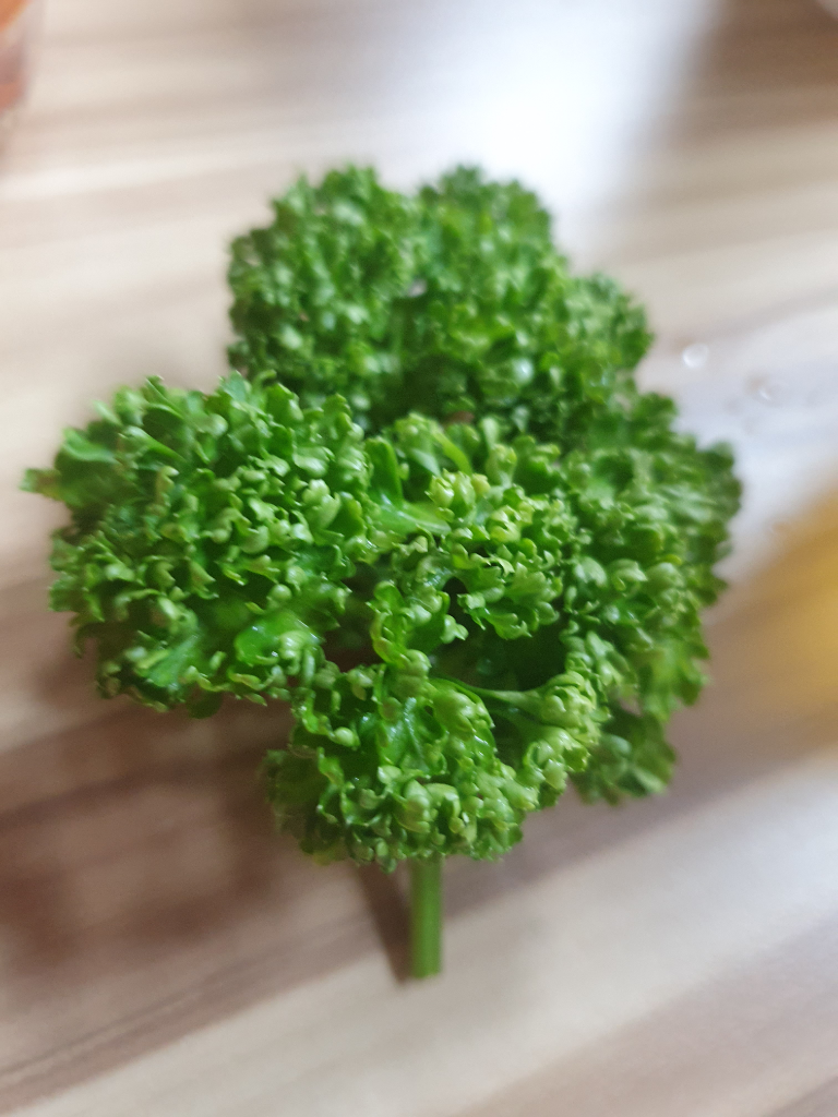 파슬리입니다. 파슬리는 기니피그에게 좋은 영양소를 많이 제공하는 허브입니다. 하지만 너무 많이 먹이면 위장장애나 방광결석과 같은 건강 문제를 일으킬 수 있으므로 주의해야 합니다.
