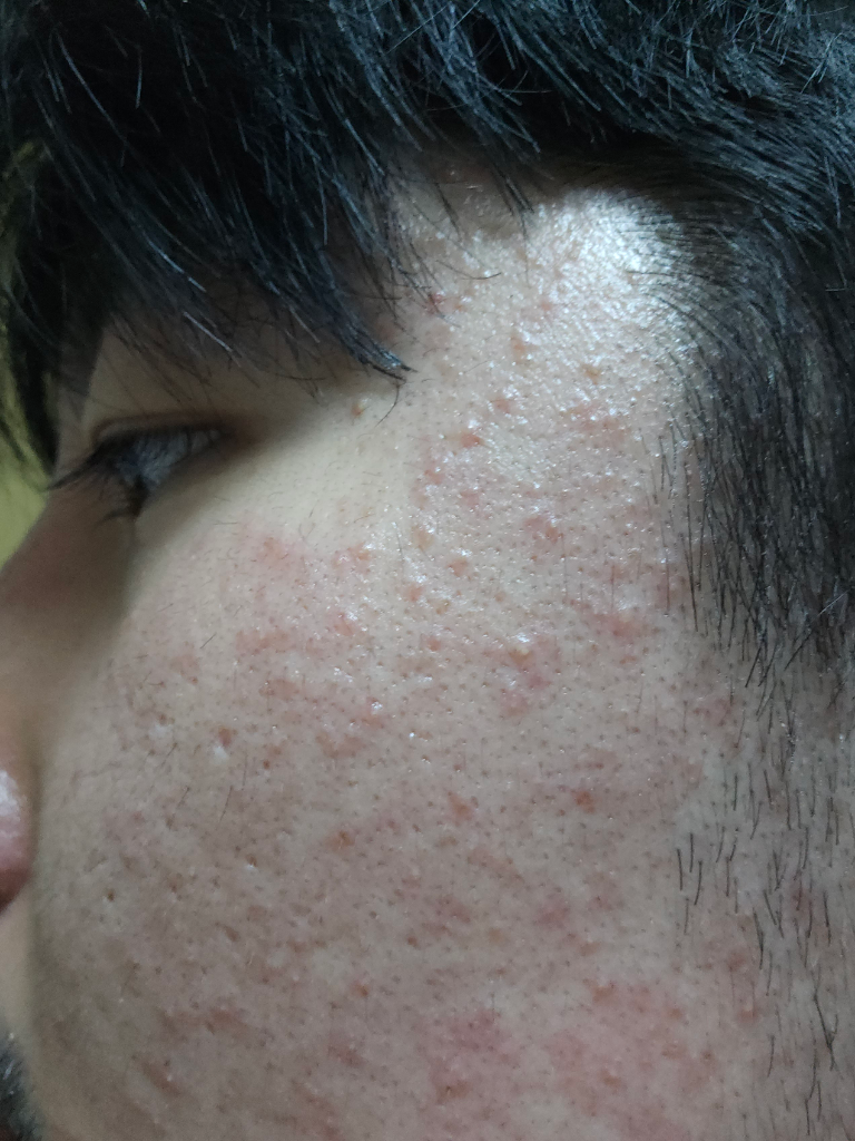 코 성형 후 2주 뒤부터 얼굴 전체에 이런 붉은기가 돌더니 발진이라 해야할지 모낭염이라 해야할지 싶은 것들이 올라옵니다