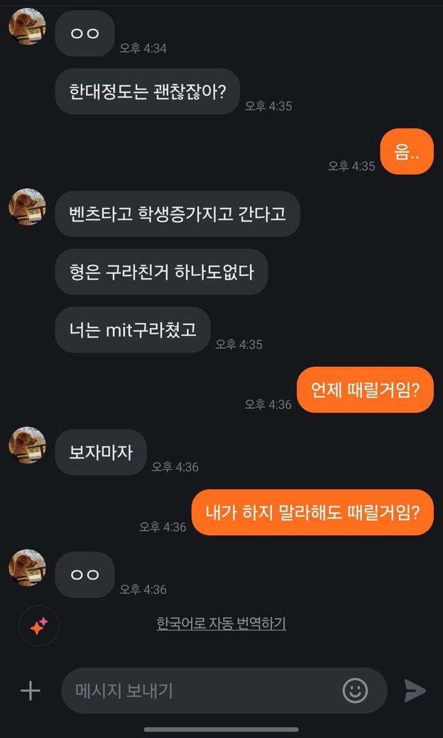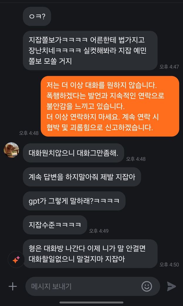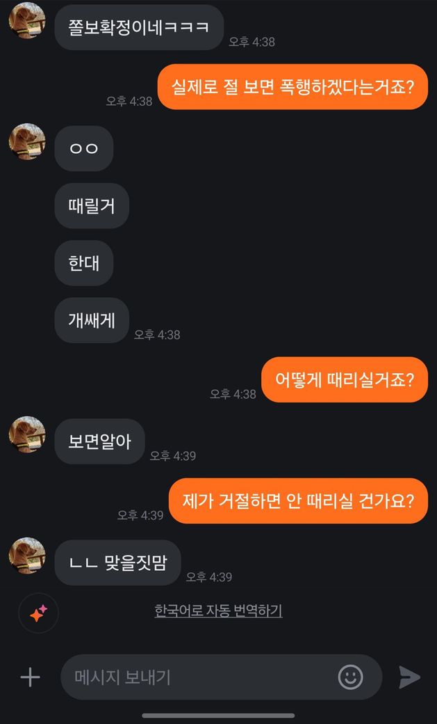 제가 거절하면 안 때릴거냐는 질문엔 ㄴㄴ맞을 짓 함.