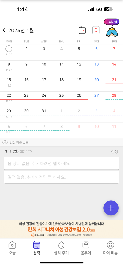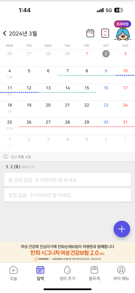 올려주신 사진으로 미루어 다음 생리 예정일은 3/26일 같고, 그렇다면 배란일은 3/12일, 예상 가임기 기간은 3/7~15을 나타나는 것 같습니다.