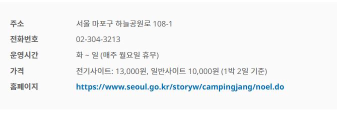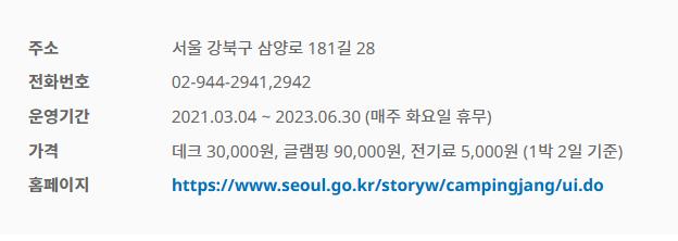 서울특별시에 있는 캠핑장을 찾았습니다.