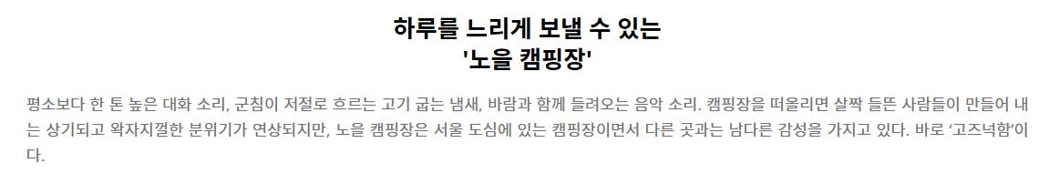 또한 '여의도 한강공원'도 캠핑하기 좋은 곳이죠.