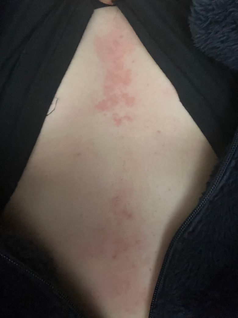 가슴 사이에 배까지 붉은 두드러기? 발진? 같은게 올라왔는데 이게 뭘까요?