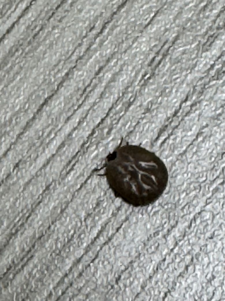 저희가 벌레를 다 아는건 아니어서 정확한진 모르겠지만 진드기(tick)로 보입니다. 진드기는 작고 둥근 몸체에 다리가 8개 있는 거미류로, 주로 동물이나 사람의 피를 빨아먹는 기생충이에요. 사진에서 보이는 특징적인 몸 모양과 다리 구조가 진드기의 모습과 일치하는 걸로 보여요.