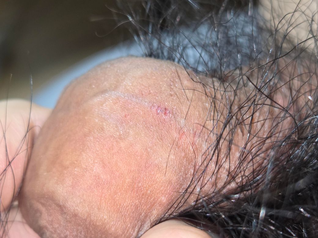 제목 그대로 입니다. 부끄러운 이야기지만 자기위로를 하고 음경쪽에 따끔거리는 증상이 있어 보니 사진 같은 상처가 있었습니다. 가만히 있으면 아프지 않고 만지면 따갑습니다. 헤르페스일 가능성이 있나요?