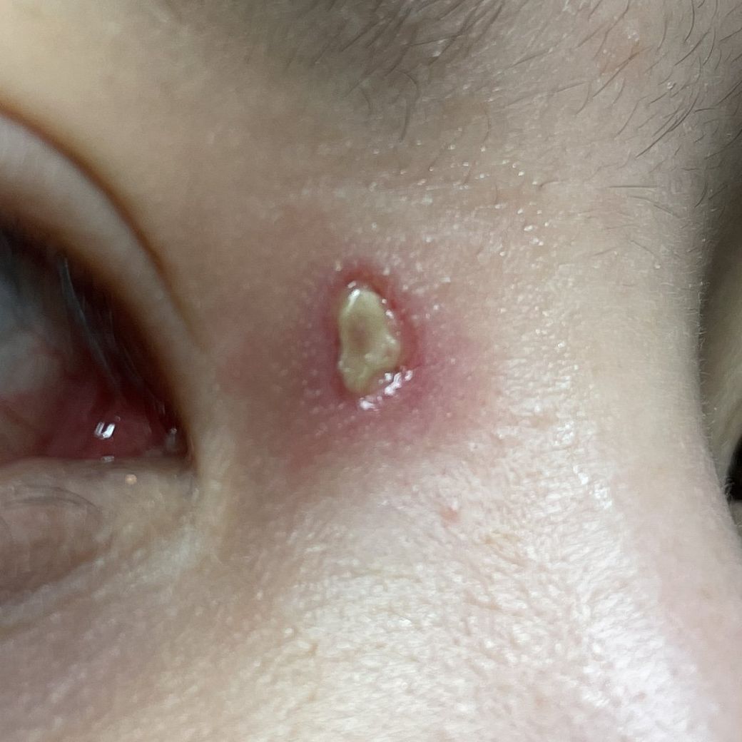 사진 순서대로 뾰루지? 위에 상처가 깊게 나서
