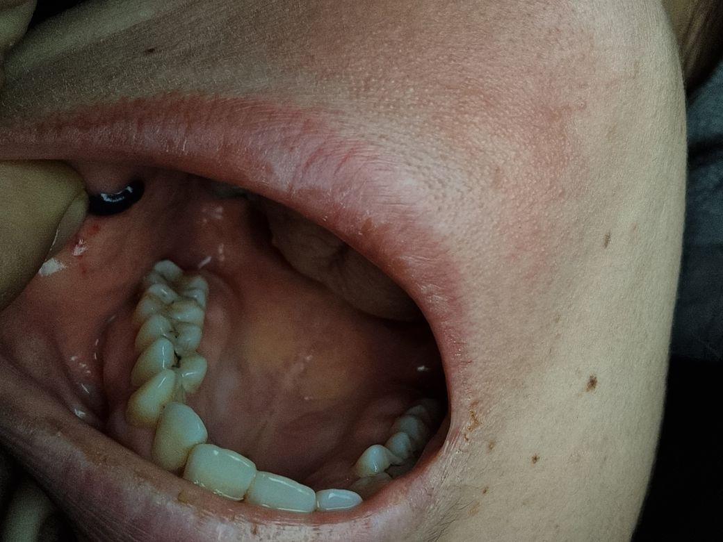 사진으로만 봐서는 전형적인 혈종(씹어서 생기는 핏덩어리)입니다.