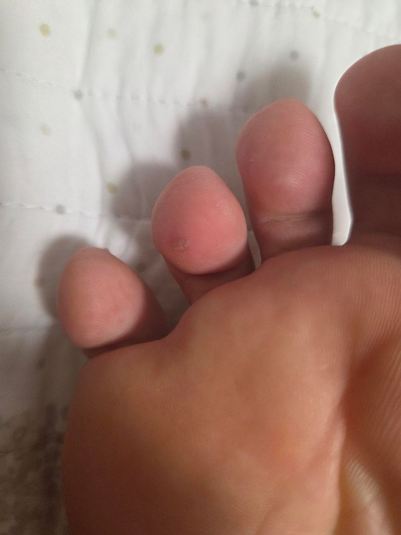 최근 발가락 옆부분에 갈색이고 각질처럼 보이는 작은 변화가 생겼습니다.