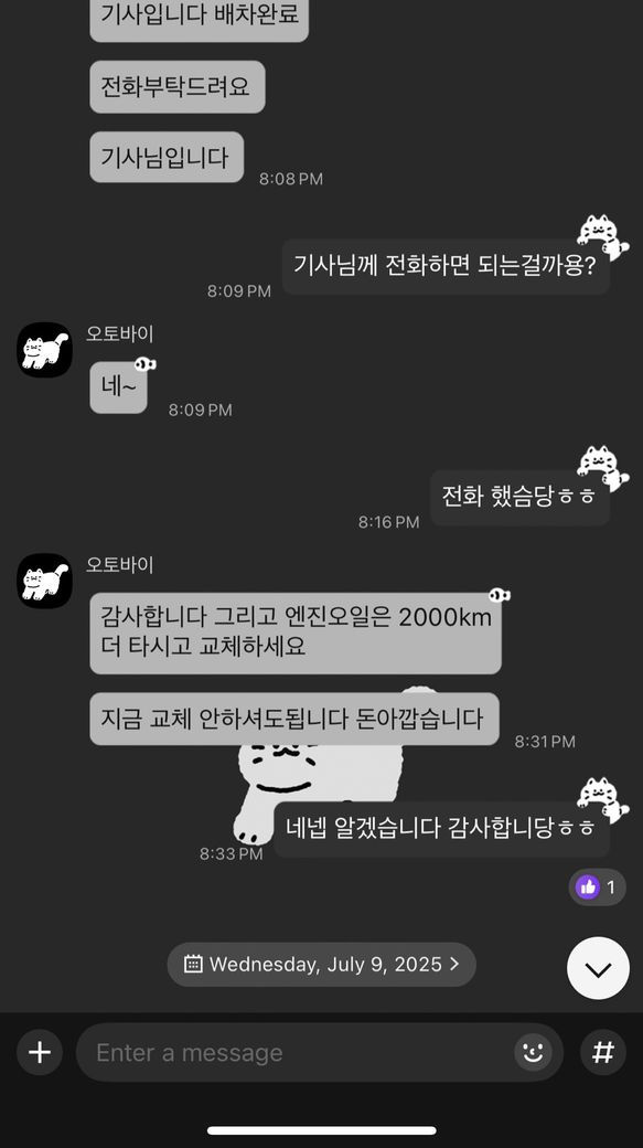 저한테 전화로 짜증내시더군요. 검침 안한 제 잘못도 있긴 하지만 판매자가 오일 갈지말라고 돈 아깝다고 2천키로 더 타고 가라고 얘기를 하니까 최근에 교체했구나 생각이 들 수 밖에 없죠 솔직히.. 지금 일단은 주변분이 자료 수집하라셔서 일단 사진 몇장 있습니다