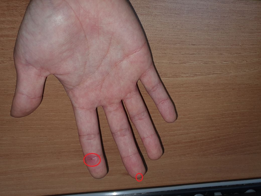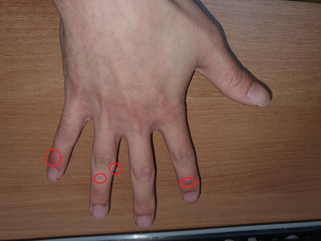 안녕하세요 아래와 같이 손가락에 발진이 있습니다.