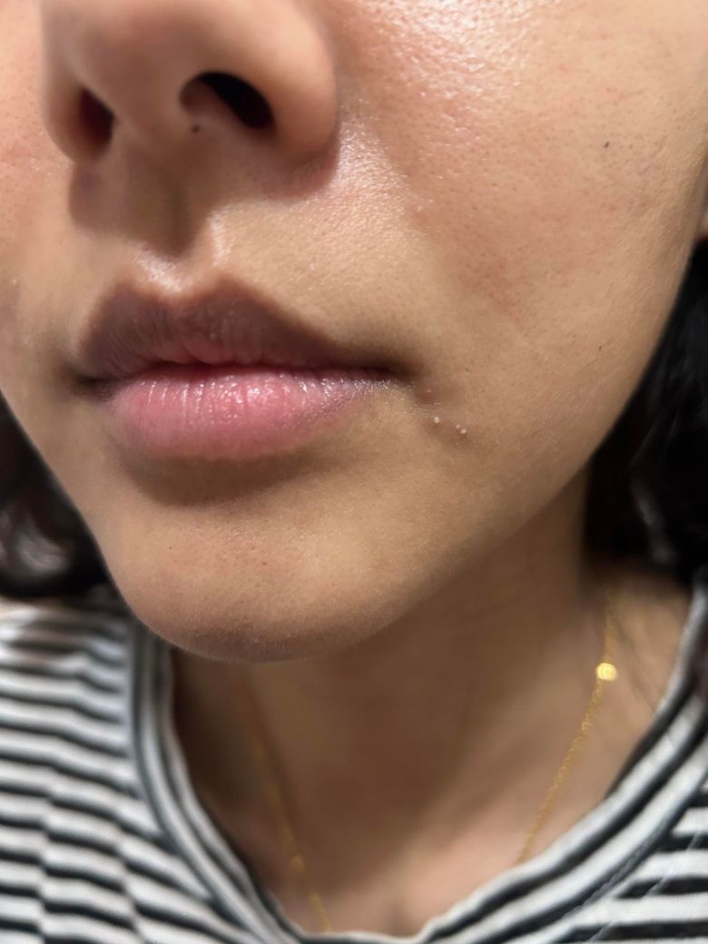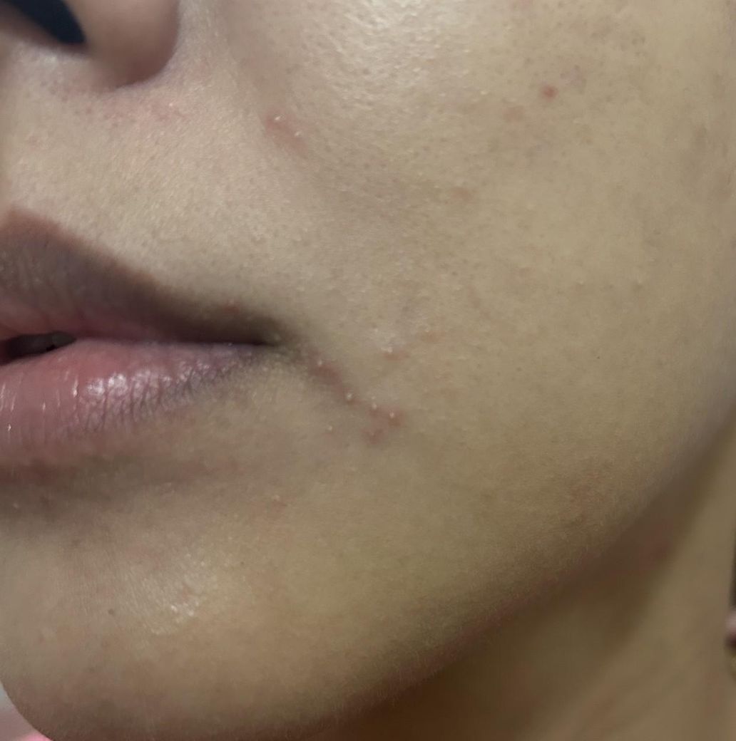 아무튼 사진상 입 주위에 작은 백색 구진들이 군집 형태로 나타나 있으며 염증은 크지 않은 양상입니다. 특히 미노사이클린과 독시사이클린 복용 시 동일 부위에 반복적으로 발생했다는 점에서 단순 여드름 악화보다는 약물 유발성 피부 반응 가능성이 더 높습니다. 이 계열 항생제는 모낭 내 균 환경을 변화시키거나 일부에서는 경미한 과민반응 형태로 이런 발진을 유발할 수 있습니다.