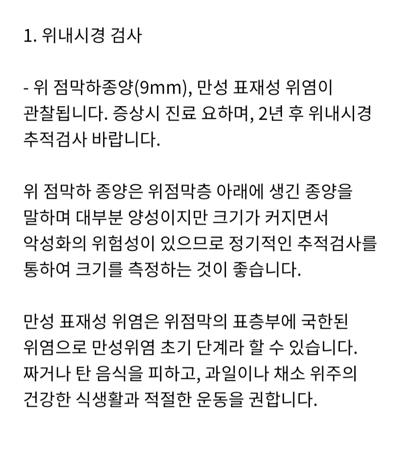 위점막하 종양의 경우 별문제가 없는 경우 2cm 정도까지 추적검사를 통하여 관찰을 합니다