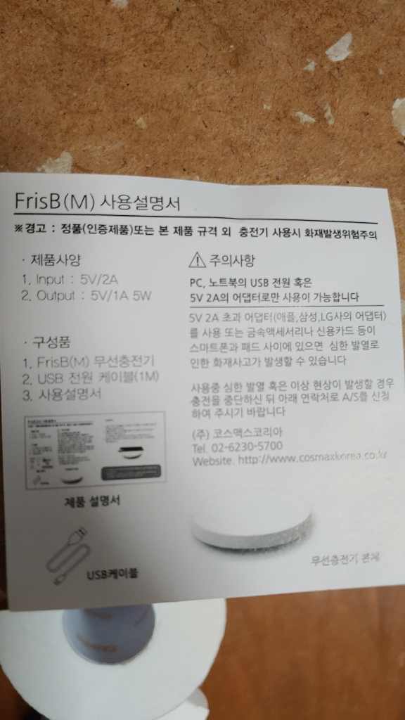 정격출력 5.0V=1.8A를 사용하는 것을 추천합니다. 무선 충전기 설명서에 명시된 대로 5V 2A 초과 어댑터 사용은 화재 위험을 초래할 수 있기 때문입니다
