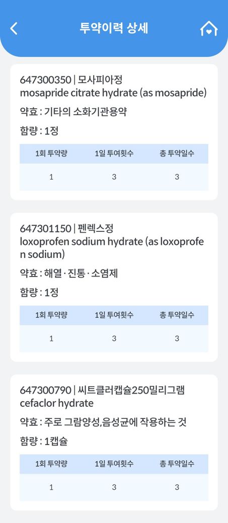 (1년 이상)철분제/(지난주 금요일부터)항생제, 소염진통제, 위장약
