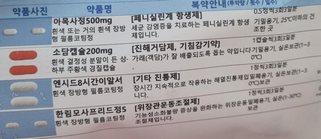 목이 부어서 병원에서 이렇 약 처방 받았습니다.