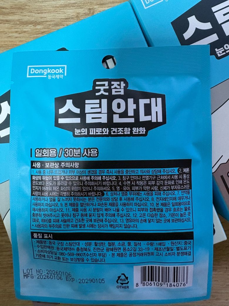 사용 주기에 대해서는, 매일 사용하셔도 무방합니다. 오히려 안구건조증 치료 목적으로는 매일 꾸준히 하는 것이 간헐적으로 하는 것보다 효과가 좋습니다. 안과 가이드라인에서도 마이봄샘 기능장애 관리로 하루 1회, 1회당 10분에서 15분 온찜질을 권고하고 있습니다. 30분짜리 제품을 매일 쓰셔도 피부나 눈에 무리가 가지는 않습니다.