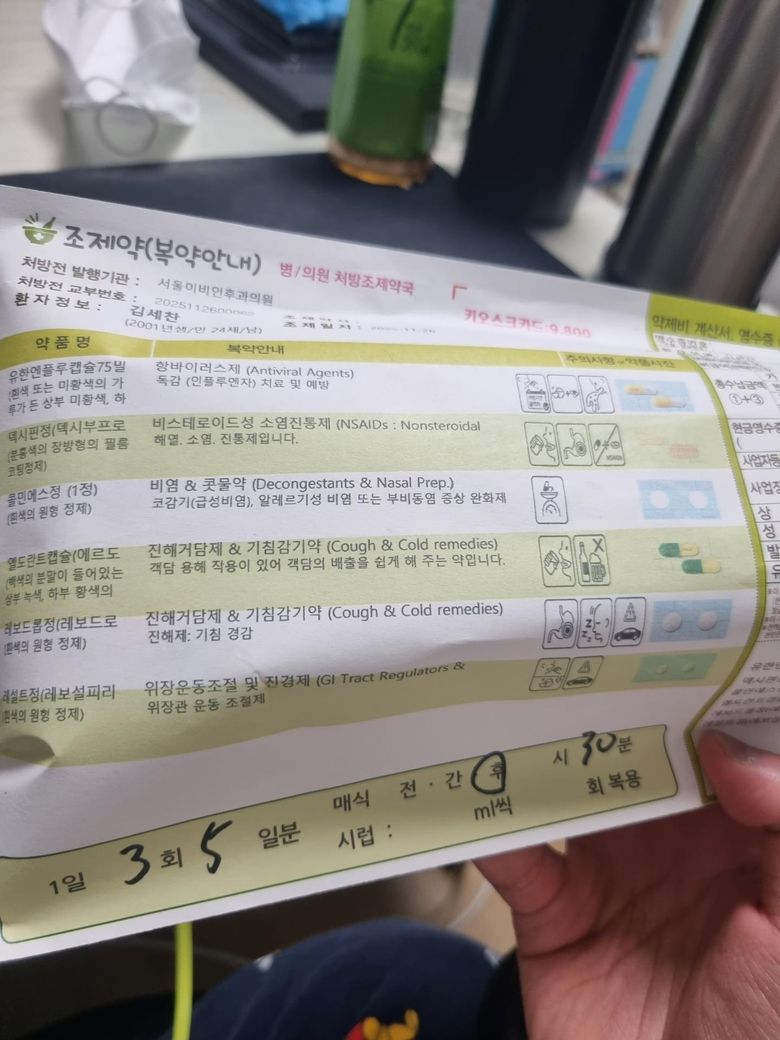 4일전 요로결석으로 복용중인 약이 있는데 독감인 가족이 있는 상황에 감기기운이 있어서 먹어도 될지 걱정입니다 자세하게 알려주실수 있을까요