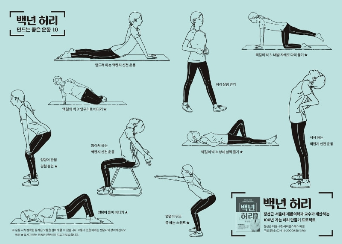 그리고 요추 전만이 무너져 있고 척추 근육이 약해져 있을 가능성이 높기 때문에 다음 "백년 허리"에 나오는 운동을 꾸준히하시면 좋아질 것입니다.