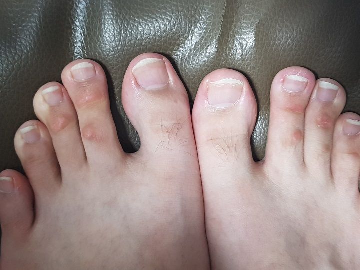 발가락의 발 등에 발생한 부분 역시 굳은 살이 맞으며 굳은 살 위에 마찬가지로