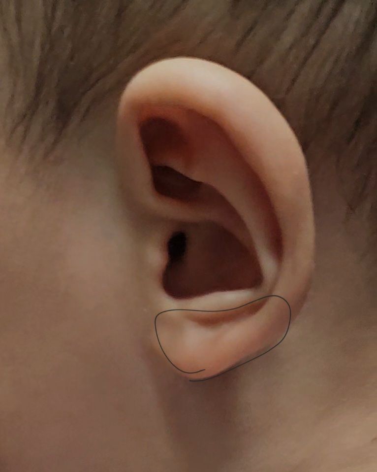 사진에 동그라미된 부분이 사람마다 다르게 생겼다고 하던데 사진처럼 울퉁불퉁한 형태는 피부가 연골주변을 감싸면서 생기는 형태인가요??