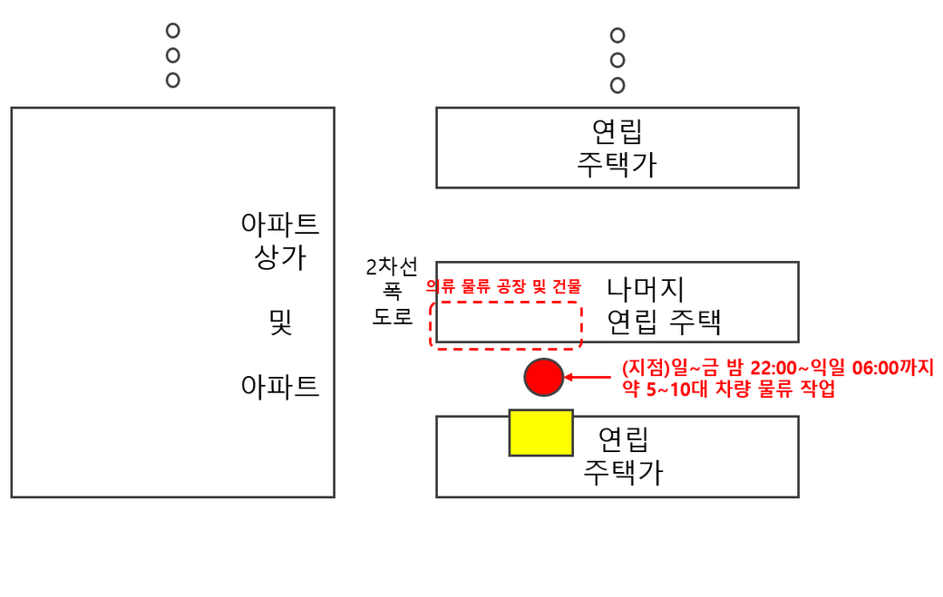 약 6년간 날이 가면 갈 수록 더욱 심해지는 의류 물류 작업 소음 공해로 인하여 숙면을 이루지 못하고 있습니다.
