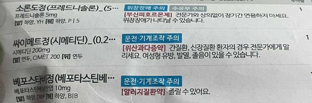 항히스타민제의 경우 증상에 따라 3가지까지 병용하는 경우가 있어 문제되지 않습니다.