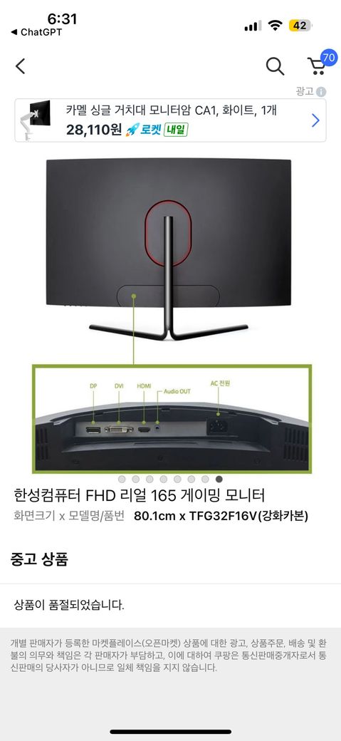 한성 모니터 모니터암 문제로 고민입니다🥹