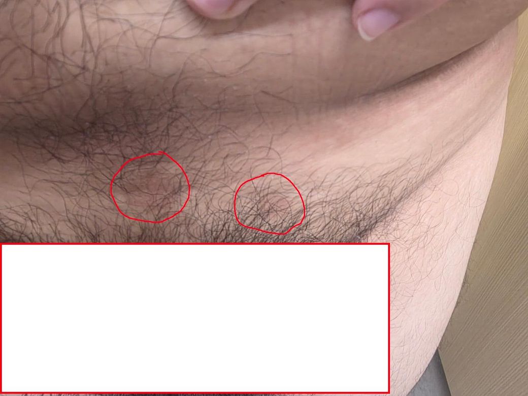 사진 1 : 성기 음모 부분 붉은 원형 (빨간색 펜으로 동그라미 친 부분)