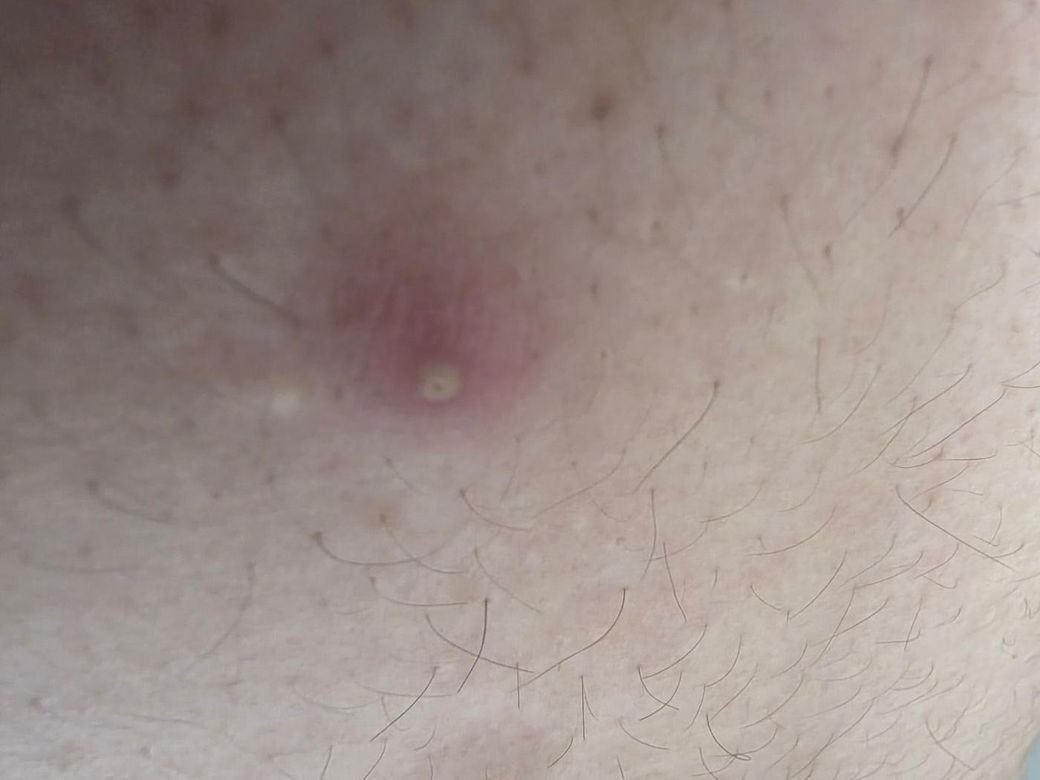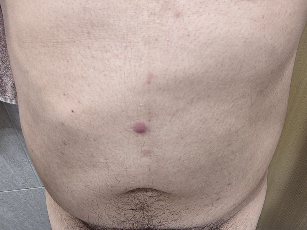 2. 배꼽 위쪽의 선명한 붉은 뾰루지