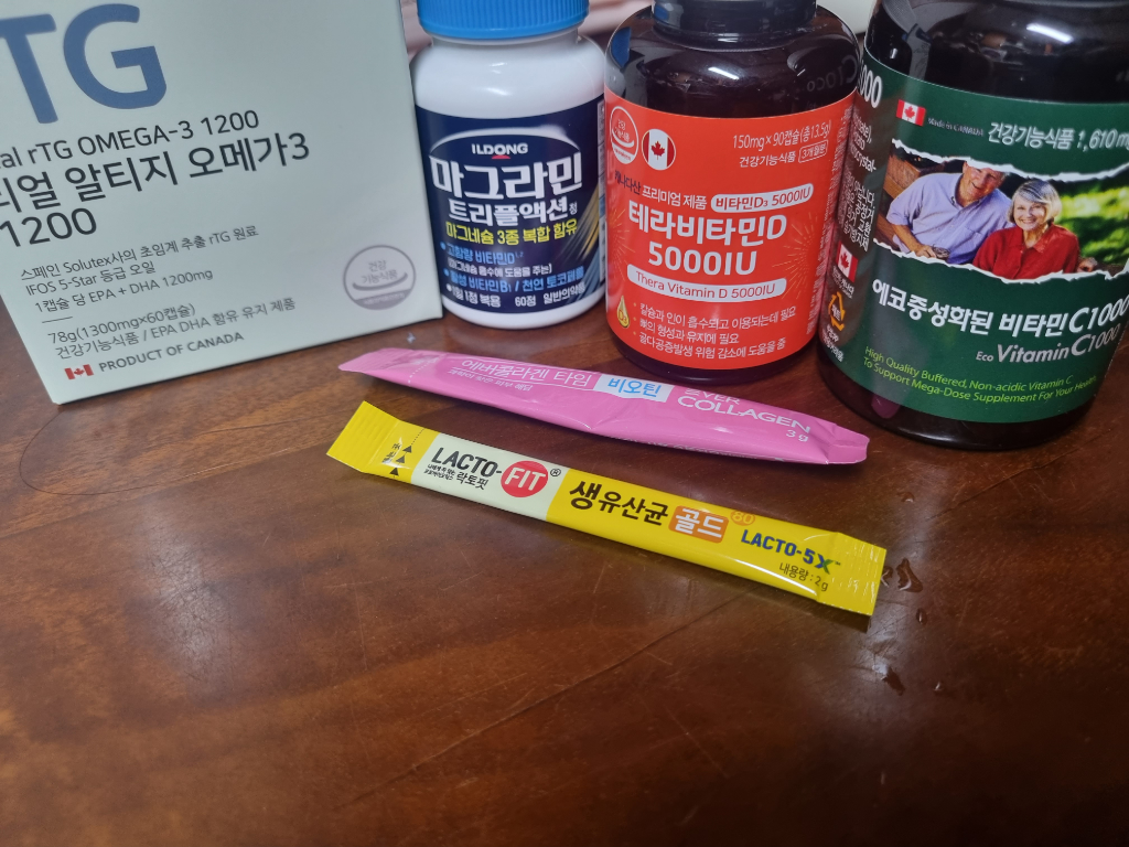 현재 복용 중이신 오메가3 / 비타민 D / 비타민 C/ 콜라겐, 비오틴 / 생유산균은