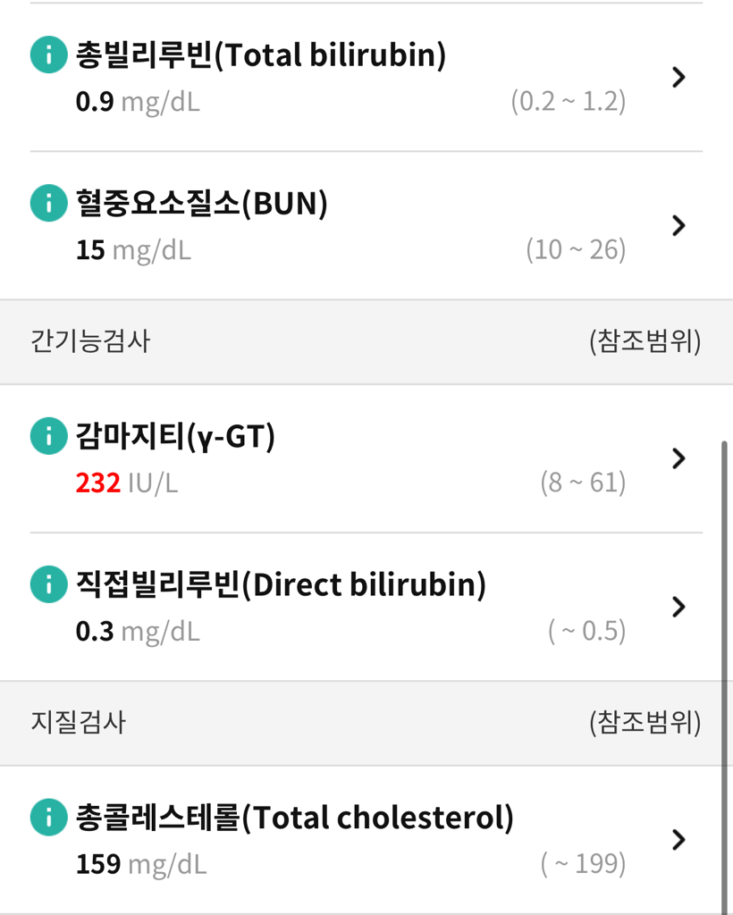 r-GTP만 유독 높게 나타나지만 금주 상태시라면 약물 등에 의한 영향일 수도 있기 때문에 소화기내과에서 현재 복용중인 약물들에 대해서도 확인을 받아보시는 것이 좋겠습니다.