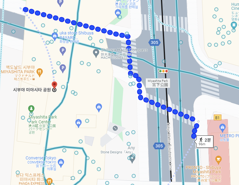 위의 시부야역 B1 출구에서 나오셔서 횡단보도 건너면 바로, 미야시타 파크가 나옵니다.