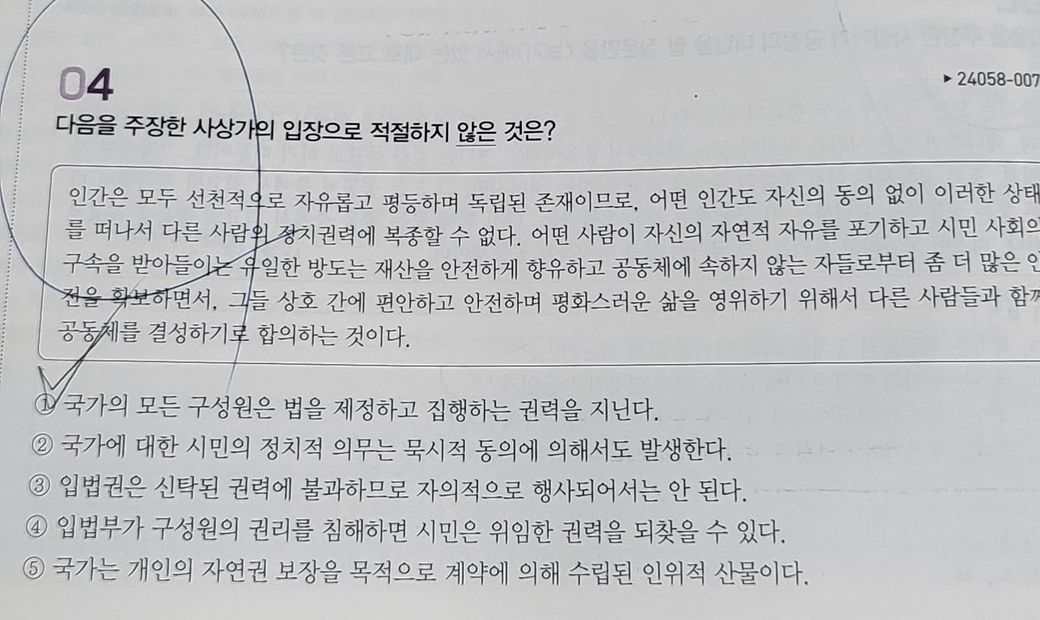 나머지 선지 4개가 다 로크 설명이길래 일단 로크로 보고 풀어서 맞긴했는데. 이 선지만 봤을때 로크라는 것을 알 수 있는 부분이 뭐가 있을까요? 또 유교 불교 도가나 공자 맹자 순자 이런거에서 키워드로 사상가 구분하는것처럼 홉스 로크 루소도 각각의 사상가만의 키워드도 알려주세요.