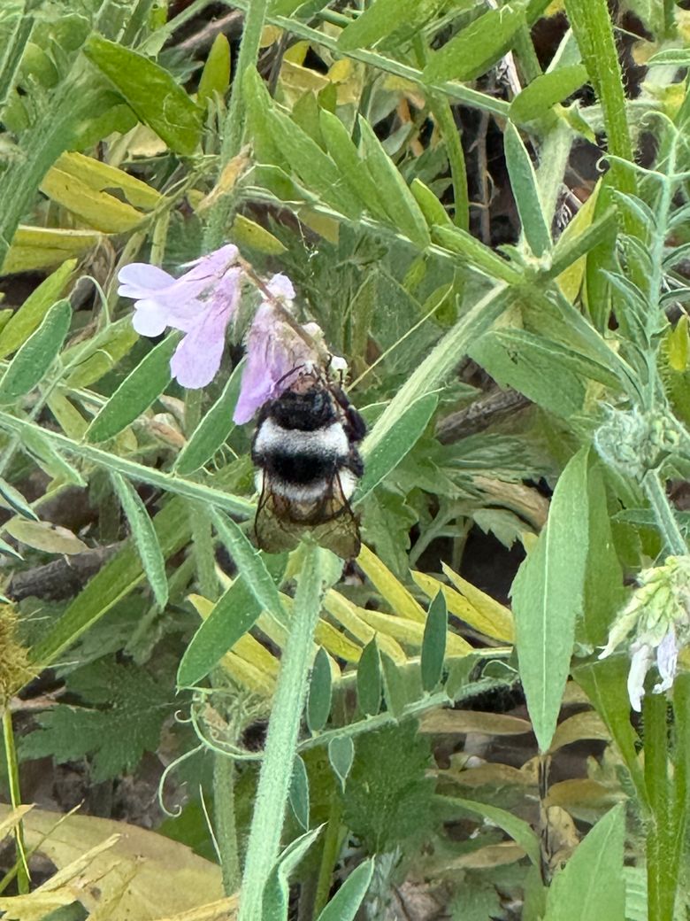 피크닉 하다가 발견한 애인데 뒤영벌 인 거까진 알겠는데 자연적으로 나올 수 있는 털 색인가요? 엉덩이 쪽 하얀 개체들은 있는건 알겠는데 전체적으로 흰색인 애는 처음 봐서요