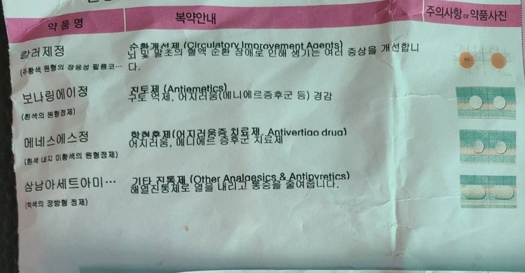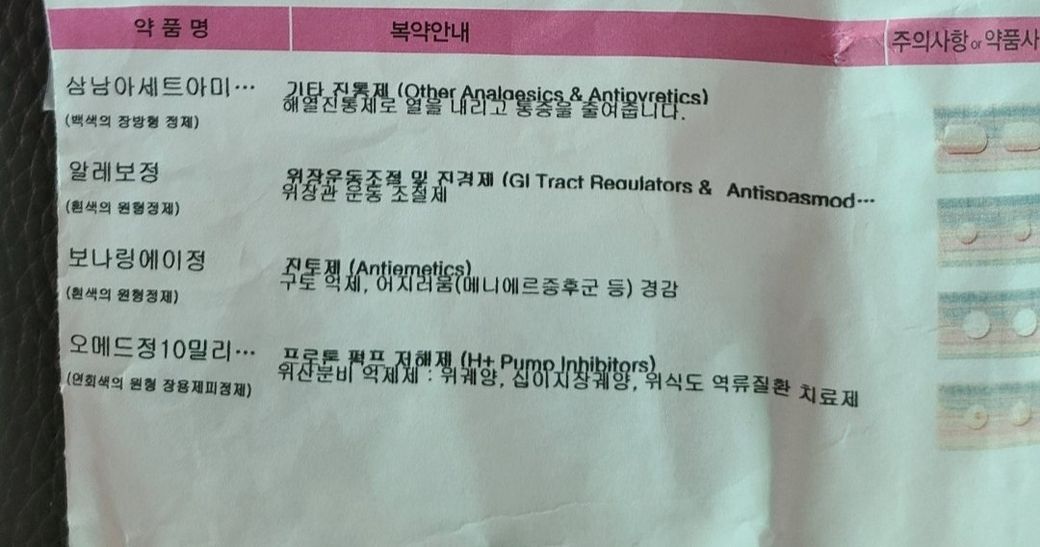 - 사진 위쪽 처방을 주로 해서 보나링에이와 아세트아미노펜이 중복되니 아래에서 이 두가지를 빼고 드세요