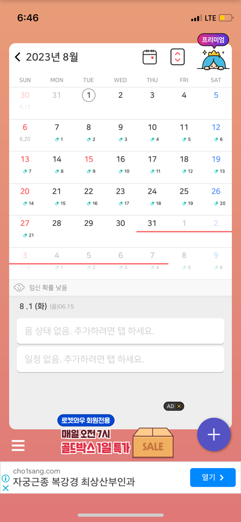 9/4일은 생리주기 1일차이므로