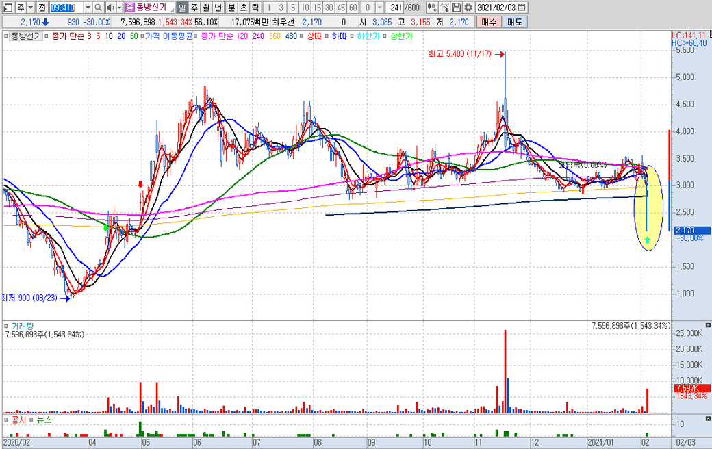 동방선기는 재무제표가 안좋죠..저런 종목은 매매해서는 안되는 종목입니다