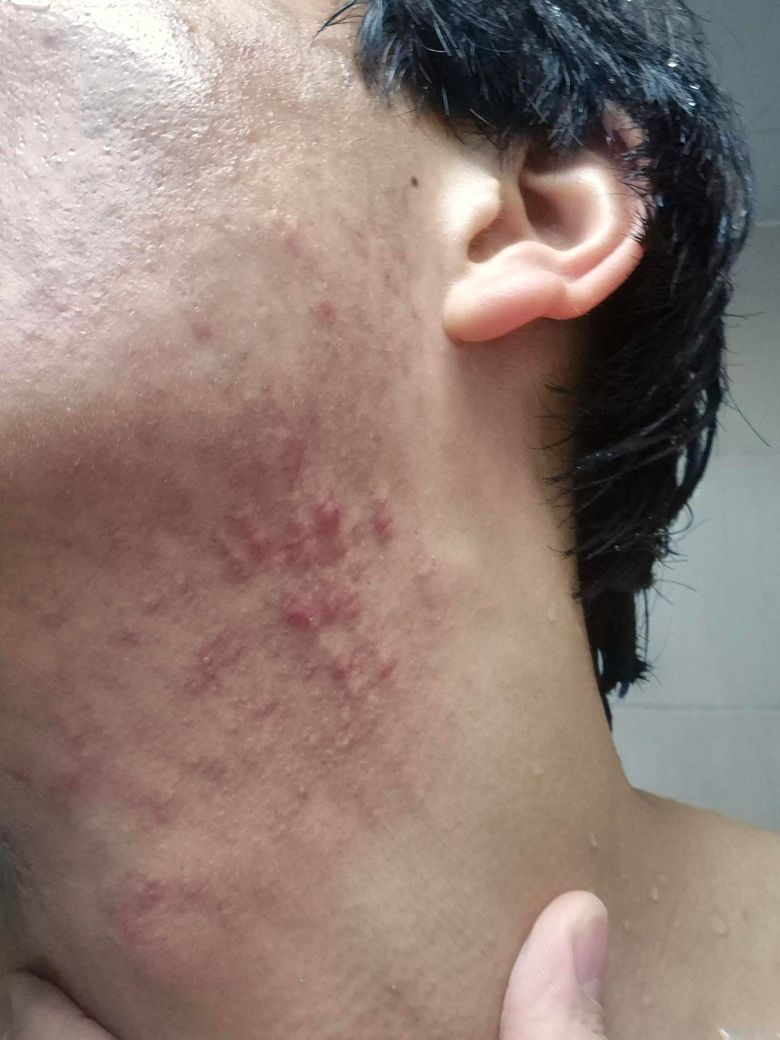 여름방학때 피부가 크게 뒤집히고 목이랑 턱선 여드름은 다 가라 앉았는데 1~2달 전부터 갑자기 턱선이랑 목에 뭐가 나기 시작했습니다.