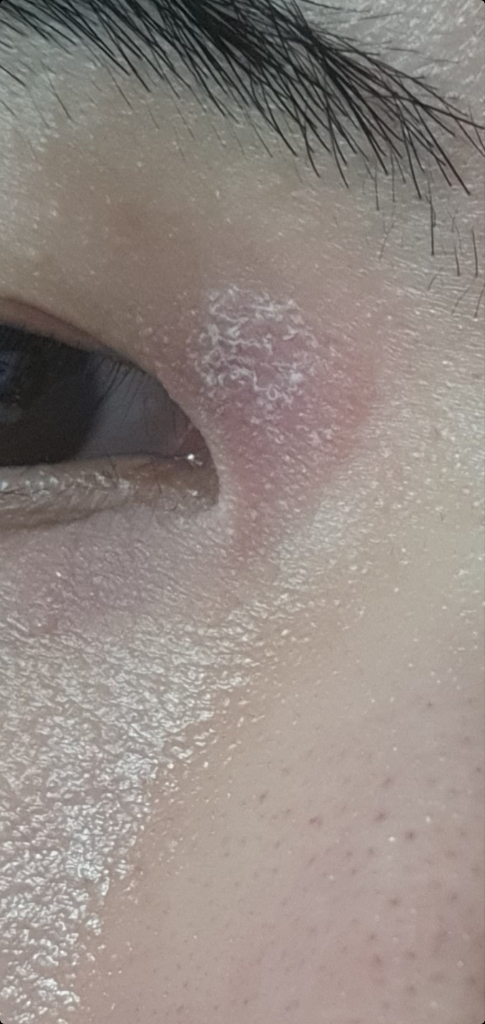 피부 각질층이 얇아져 탈락이 이뤄지고 있습니다. 보습제나 외용제를 발라주고 피부분비를 줄이는 생활습관 즉, 수면보족이나 지나친 스트레스 등을 피하고 마음의 안정을 위해서 노력하면 회복 되실겁니다.