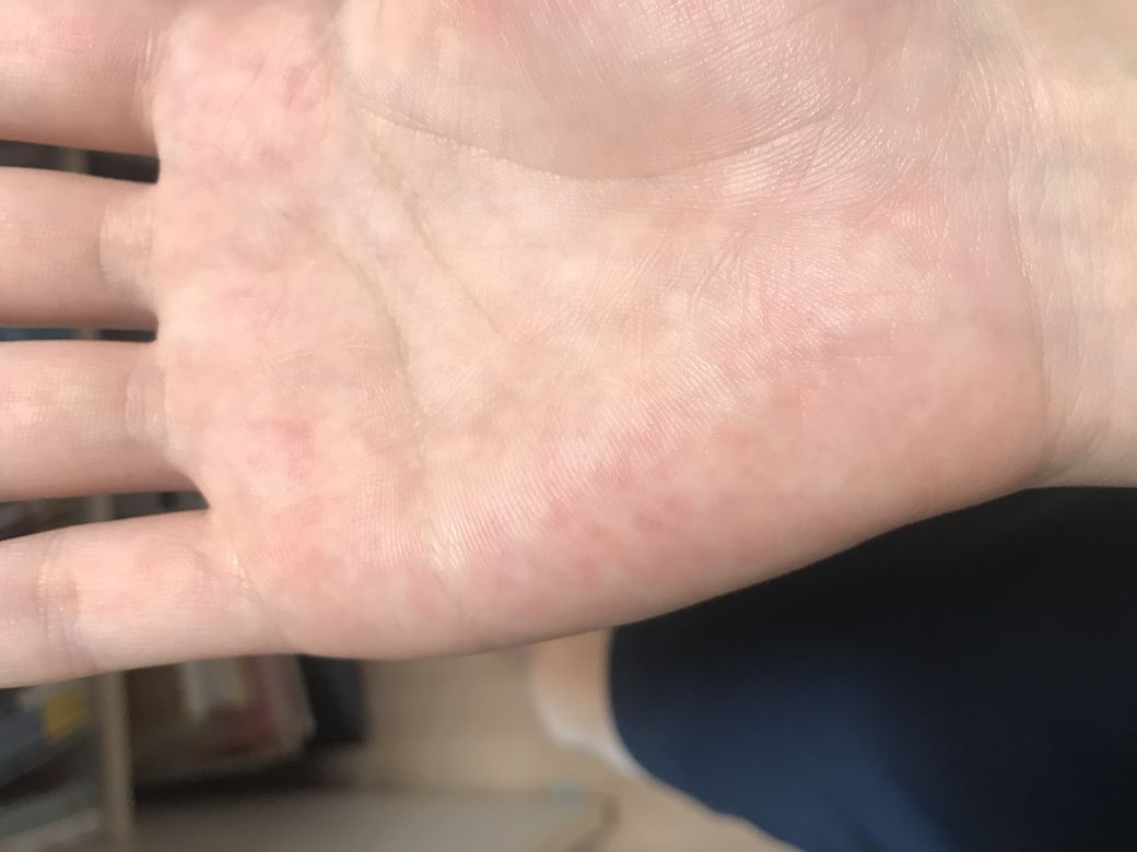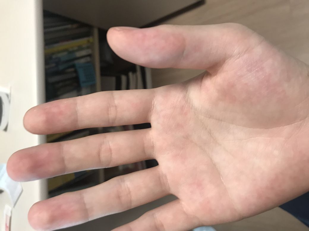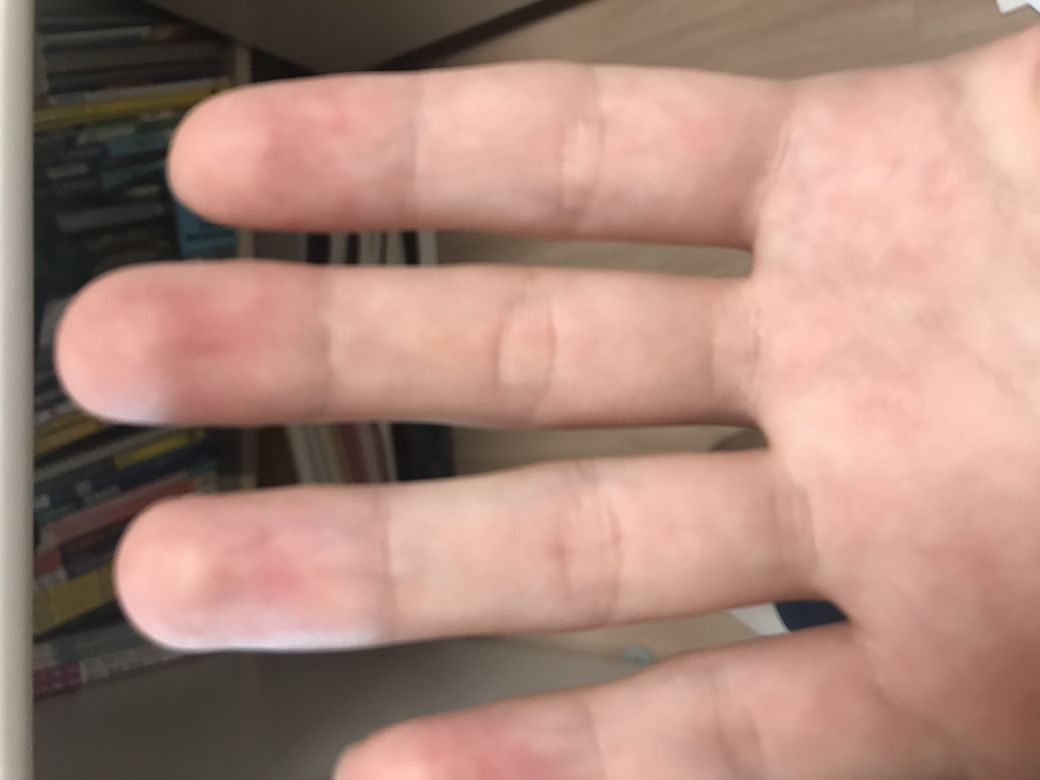 손 색깔이 한 달쯤 전주터 울긋불긋해지고 컨디션도 별론데 손 색깔이 사진과 같은 건 어떤 문제가 있는 건가요??