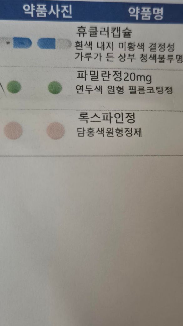 즉, 정리하면 사진 속의 두 처방약을 병용하는 경우 일부 약을 빼고 복용해야 하며, 두번째 사진의 처방약은 그대로 복용하시고 첫번째 사진의 약 중 휴클러 캡슐만 추가적으로 복용하시면 됩니다.