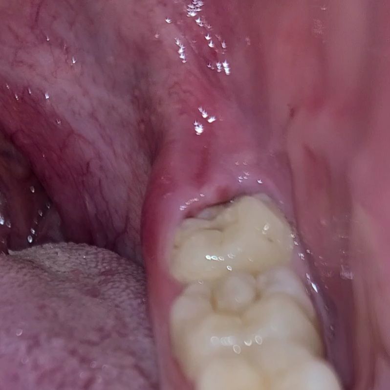 사랑니 부근에 하얀 염증이 생긴 것 같습니다