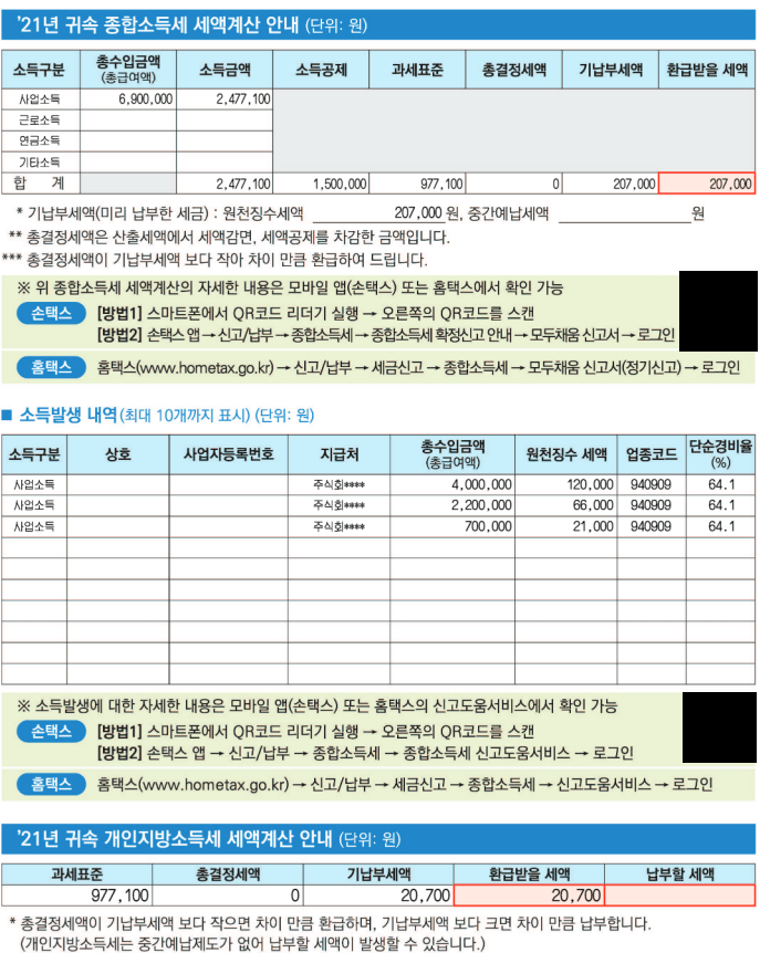 현재 홈택스 로그인 후 종합소득세 신고로 넘어가시면 간단하게 작성된 동일한 신고서가 나오며 환급계좌만 입력시 신고가능합니다.