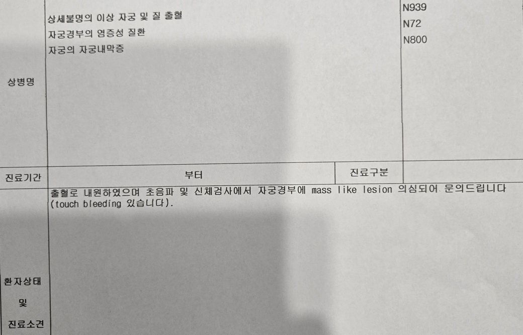 하혈 후 자궁경부 산부인과 진료 궁금한 점