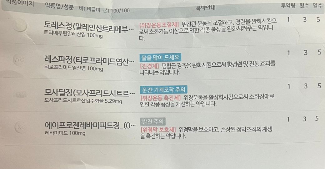 아래의 약과 같이 드셔도 됩니다. 다만 모사프리드는 빼고 드시는 것을 권장합니다.